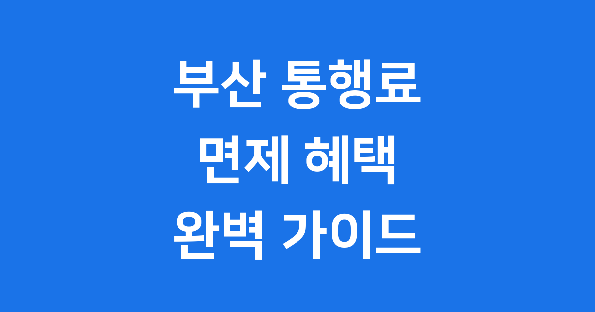 부산 통행료 면제, 핵심 요약 📝